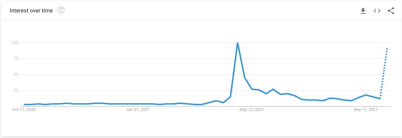جستجو های گوگل برای شیبا(SHIB). منبع: Google Trends