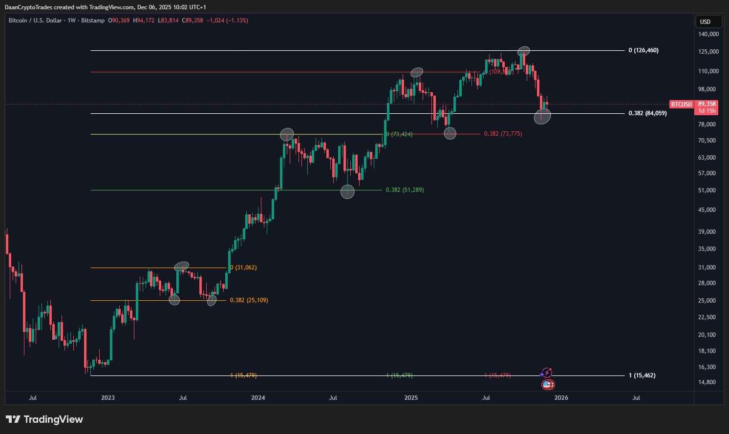 به گفته Daan Crypto Trades، بیت‌کوین اکنون در یک سطح تکنیکال حیاتی در نوسان است که باید توسط خریداران حفظ شود تا از زیان‌های بیشتر جلوگیری گردد. در صورت از دست رفتن این سطح احتمال افت بیت‌کوین تا حدود ۷۶ هزار دلار وجود دارد. تمام توجه بازار اکنون به جلسه سیاست‌گذاری کمیته بازار آزاد فدرال (FOMC) در روزهای سه‌شنبه و چهارشنبه معطوف شده است. انتظار می‌رود بانک مرکزی آمریکا نرخ بهره را ۰.۲۵ درصد کاهش دهد.