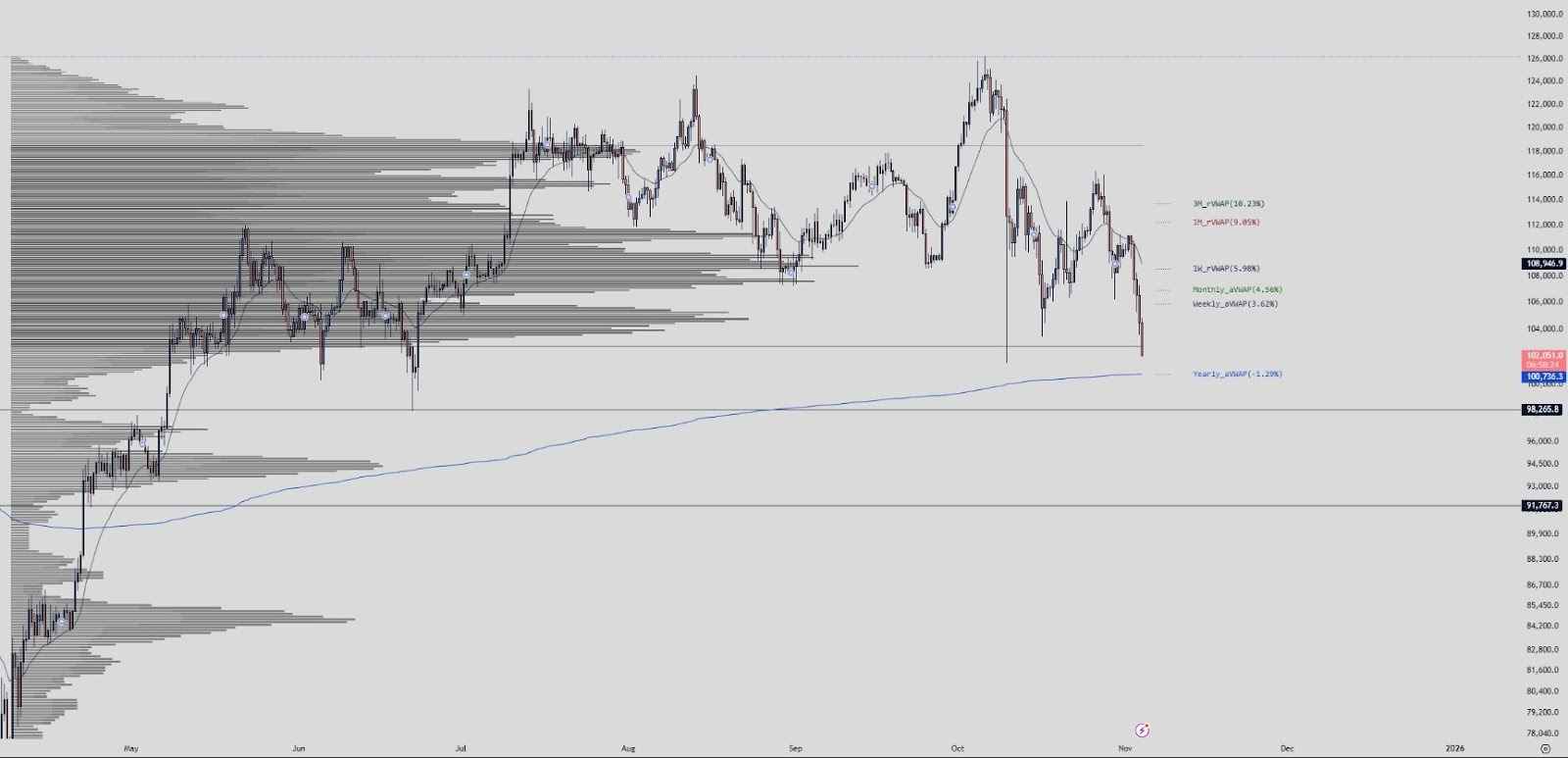 فشار فروش در بازار بیت‌کوین روز سه‌شنبه شدت گرفت و قیمت این ارزدیجیتال تا محدوده‌ی ۱۰۰,۸۰۰ دلار پایین آمد، کمترین سطح در چهار ماه گذشته. تریدر معروفی با نام مستعار HORSE در پستی در ایکس اعلام کرد: «ممکن است ۱۰۰ هزار دلار به‌عنوان تله‌ای برای خریداران عمل کند، اما اگر این سطح شکسته شود، محدوده‌های بعدی برای اصلاح عمیق‌تر در نزدیکی ۹۵ هزار دلار قرار دارند.»