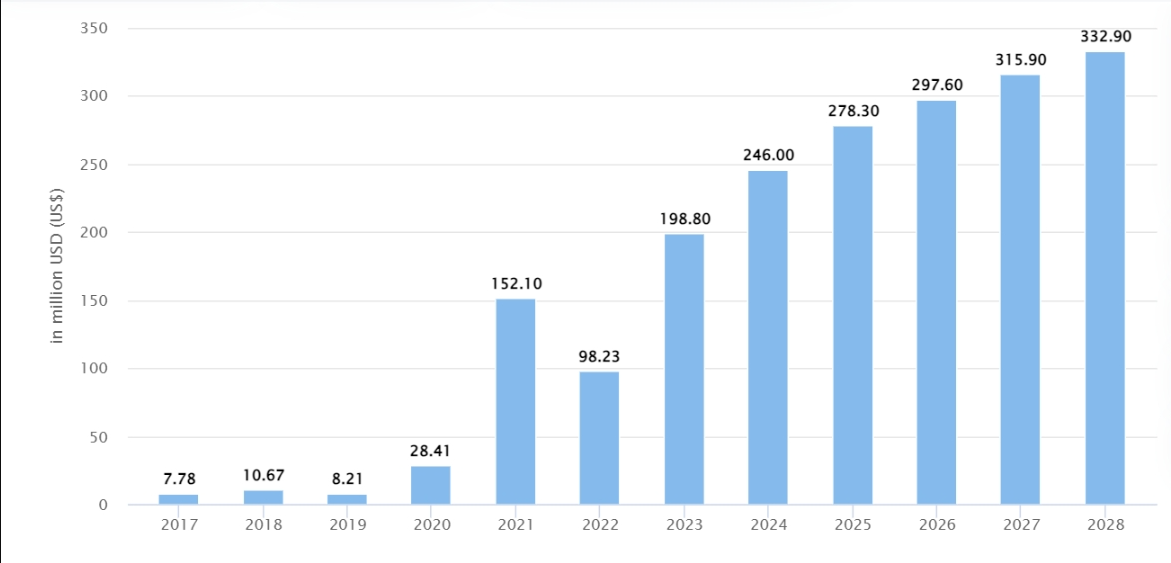 انتظار میرود که صنعت رمزارز آفریقای جنوبی تا سال ۲۰۲۸ تقریباً ۸ درصد رشد کند. منبع: Statista