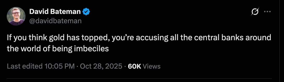 «دیوید بیتمن»، معامله‌گر مشهور فلزات گران‌بها، معتقد است که افت اخیر بیشتر یک اصلاح در بازار صعودی است و روند بلندمدت طلا همچنان صعودی باقی می‌ماند.