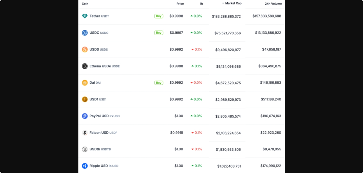 اگرچه RLUSD هنوز از غولهای استیبلکوین مانند تتر (USDT) با ۱۸۳ میلیارد دلار و یو اس دی کوین (USDC) با ۷۵ میلیارد دلار ارزش بازار فاصله دارد، اما استیبلکوین ریپل به عنوان یک رقیب جدی در میان استیبلکوینهای وابسته به دلار آمریکا ظهور کرده است. در زمان نگارش این متن، RLUSD به عنوان دهمین استیبلکوین بزرگ دلار آمریکا از نظر ارزش بازار شناخته میشود و حجم معاملات روزانه آن ۱۷۴ میلیون دلار است که با PayPal USD (PYUSD) و دای (DAI) که به ترتیب در رتبههای هفتم و پنجم قرار دارند، قابل مقایسه است.