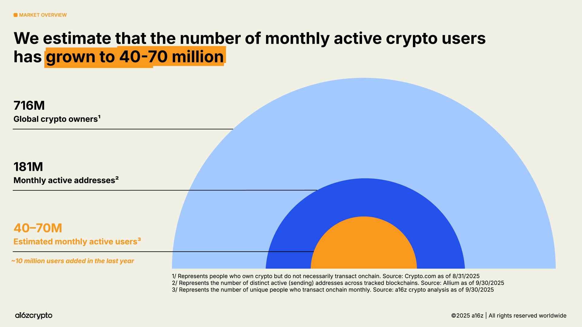 بر اساس تخمین این گزارش، تعداد کاربران فعال ماهانه کریپتو بین ۴۰ تا ۷۰ میلیون نفر برآورد میشود.