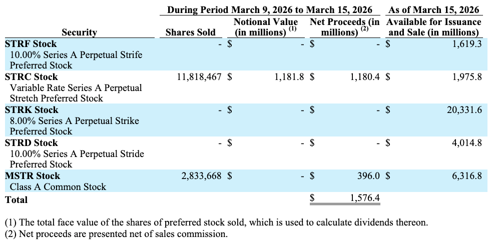 این خرید در حالی انجام شد که Strategy مقدار بیسابقهای از سهام ممتاز دائمی خود با نام Stretch (STRC) را به فروش رسانده است. این اقدام پس از آن صورت گرفت که شرکت در ۹ مارس قوانین فروش این سهام را تسهیل کرد.
