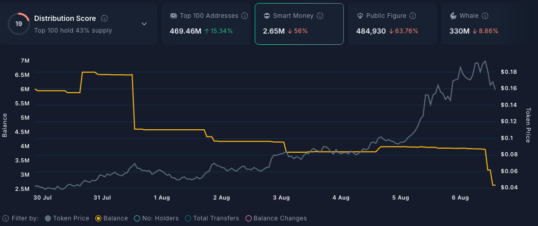 در حالی که بسیاری از خریداران جدید توکنهای خود را با اصطلاحاً «دستهای الماسی» نگه داشتهاند و اقدام به فروش سریع نکردهاند، دادههای Nansen نشان میدهد پول هوشمند (Smart Money) از این موج قیمتی برای فروش استفاده کرده است.