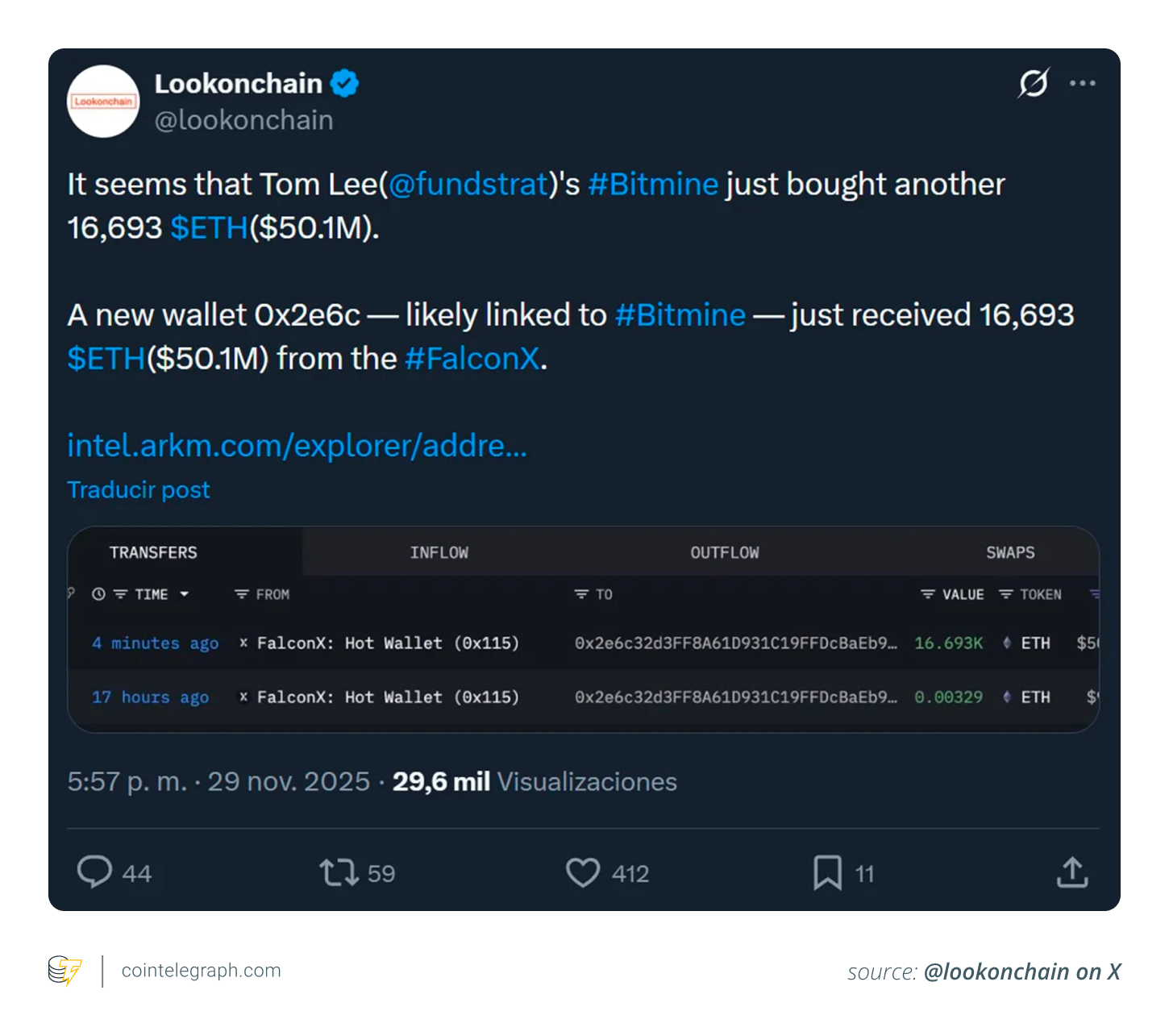 BitMine حتی زمانی که سایر شاخصهای بازار کریپتو حالت محافظهکارانه گرفتهاند، سرعت خرید اتریوم را افزایش داده است.